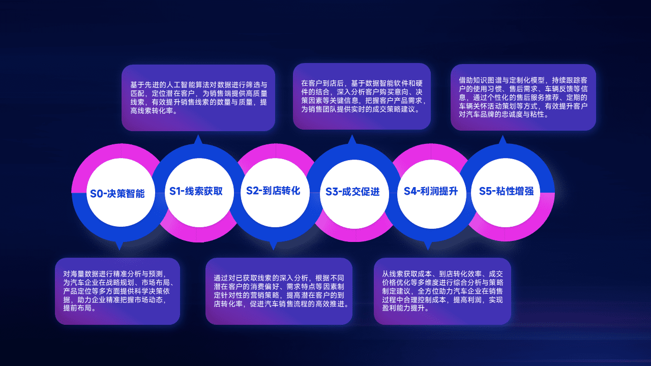 通过拓宽潜在客户来源、、优化线索分配并提高到店转化率,,,以增强销售效率。。。同时,,利用线索数据不断优化分析模型,,有效提升转化率,,,扩大营销影响力。。。